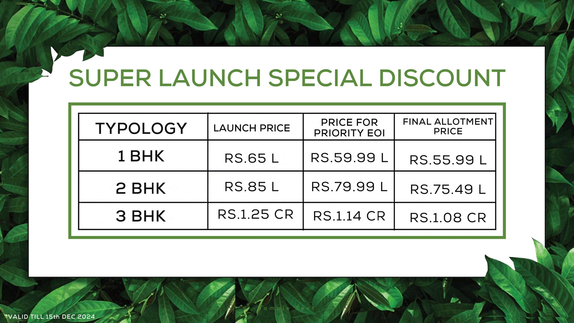| Unit Type | Area (Sq. Ft.) | Price (Rs.) |